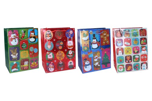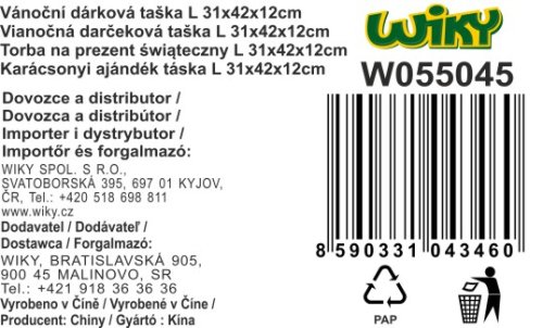Darčeková taška o veľkosti L 31x42x12 cm VIANOCE. 4 varianty: zelená, modrá, strieborná, červená.