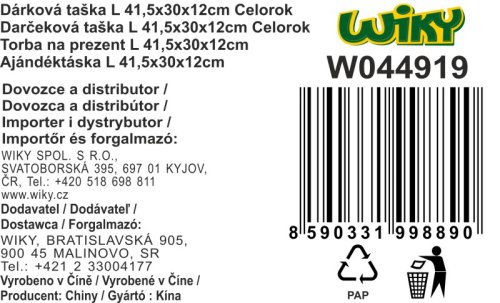 Darčeková taška o veľkosti L 41,5x30x12 cm Celorok. 4 druhy.
