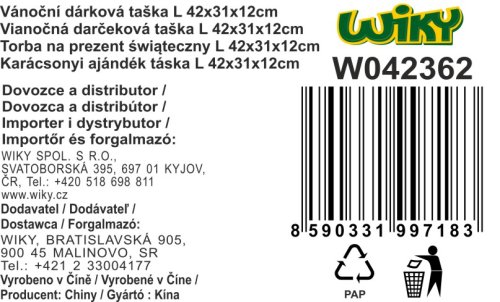Darčeková taška o veľkosti L 42x31x12 cm VIANOCE. 4 varianty.