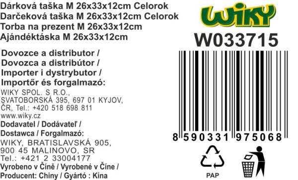 Darčeková taška o veľkosti M 26x33x12 cm celorok 4 farebné prevedenie: hnedá, biela, ružová, zelená