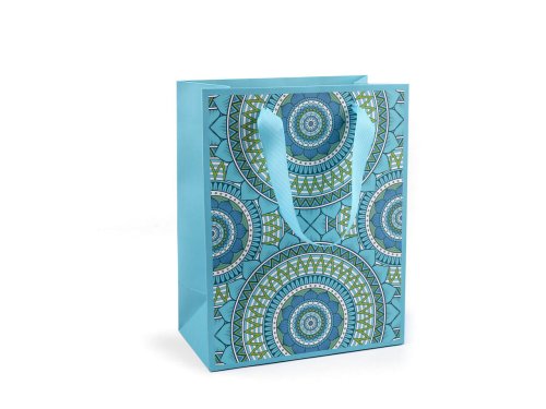 Darčeková taška s motívom mandál je vyrobená z kvalitného pevného kriedového papiera. Mandaly zdobia prednú aj zadnú stranu tašky. Vďaka ucha zo stuhy tašku pohodlne uchopíte do ruky. Využijete ju na akúkoľvek príležitosť a navyše vám ušetrí čas pri balení darčekov.
