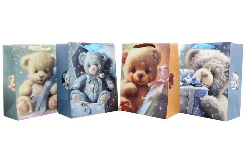 Darčeková taška s motívom medvedíkov. Materiál papier. Rozmery 18x23x10 cm. Výrobok nie je hračka.