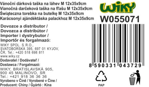 Darčeková taška na fľašu o veľkosti M 12x35x9 cm VIANOCE. 4 varianty.