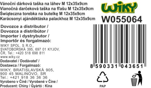 Darčeková taška na fľašu o veľkosti M 12x35x9 cm VIANOCE. 4 varianty.