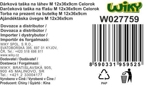 Darčeková taška na fľašu o veľkosti M 12x36x9 cm Celorok. 4 rôzne druhy.