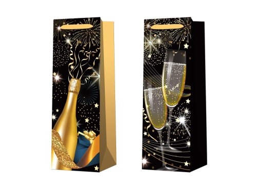 Darčeková taška na fľašu je ideálnym riešením pre elegantné a praktické zabalenie fľaše vína, šampanského alebo iného nápoja. Jej rozmery sú 130x125x370 mm. Tovar je dodávaný v mixe. Doručovaný tovar je vyberaný náhodne a nie je možné vybrať konkrétne prevedenie.