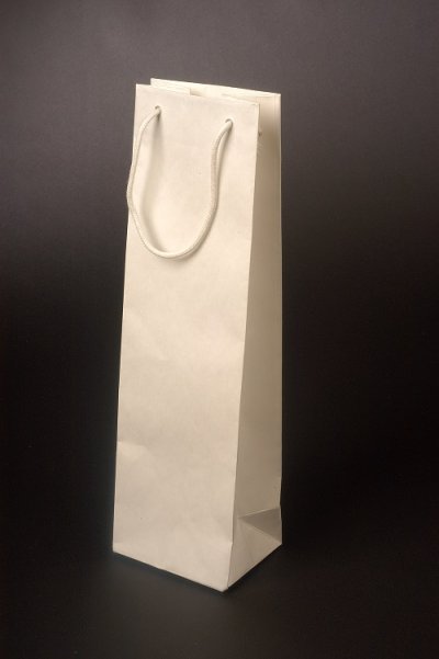 • Darčeková papierová taška na fľašu s uchami z farebnej bavlnenej šnúrky, ideálna pre väčšinu štandardných fliaš vína