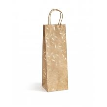Darčeková taška - na víno, kraft, zlaté listy, 5 ks