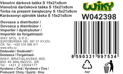 Darčeková taška o veľkosti S 15x21x8 cm VIANOCE. 4 varianty.
