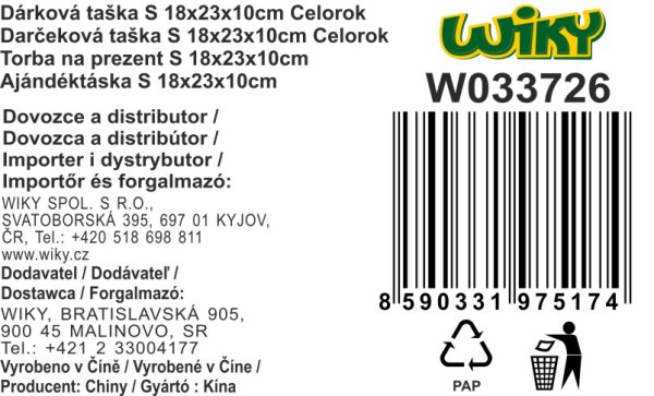 Darčeková taška o veľkosti S 18x23x10 cm celorok 4 farebné prevedenie: čierna, červená, zelená, modrá