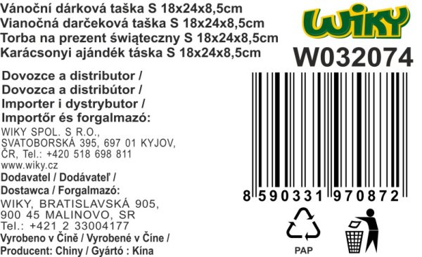 Darčeková taška o veľkosti S 18x24x8, 5 cm Vianoce 4 rôzne motívy