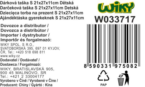 Darčeková taška o veľkosti S 21x27x11 cm Detská 4 motívy: (zebra, slon, lev, žirafa)
