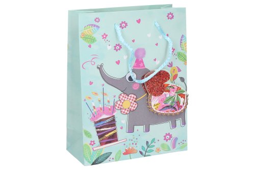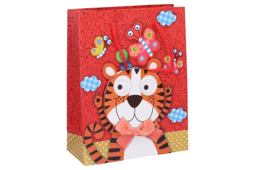 Darčeková taška o veľkosti S 23x18x8 cm Detská. 4 zvieratká: plameniak, tiger, slon, žaba.