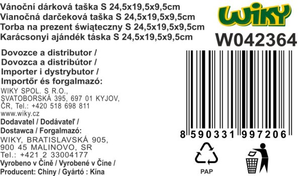 Darčeková taška o veľkosti S 24,5x19,5x9,5 cm VIANOCE. 4 varianty.