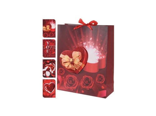 Táto darčeková taška s motívom srdca je ideálna na všetky romantické príležitosti. Jej rozmery sú 260 x 320 mm.