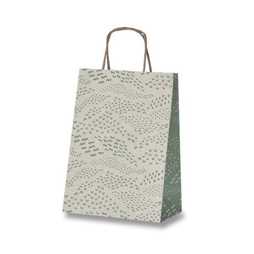 Darčeková papierová taška SADOCH Allegra Carta Erba s atraktívnymi prírodnými motívmi. Vyrobená zo 100% recyklovaného bieleho kraftového papiera, ktorý obsahuje z 25% sušené trávne vlákno a zo 75% recyklovaný papier. Na prvý pohľad prírodný charakter a štruktúra papiera sú doplnené ľahkou vôňou sušenej trávy.
