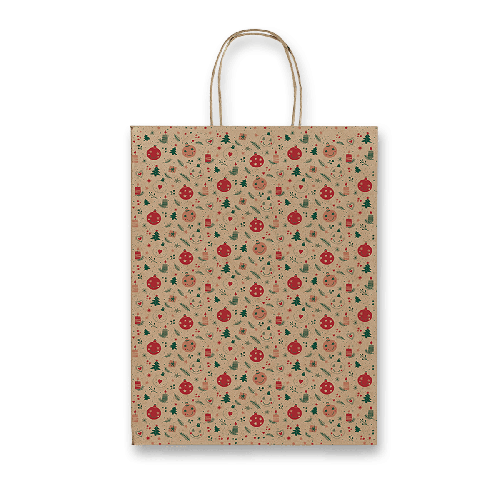 Darčeková papierová taška Sadoch Kraft Christmas s atraktívnym vianočným motívom.