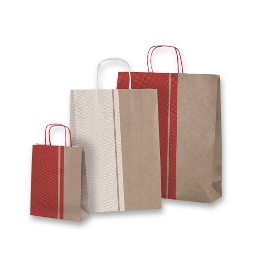 Darčeková papierová taška Sadoch Kraft White Stripe v atraktívnom dizajne s bielohnedým prevedením. Hnedý kraftový papier z vonkajšej časti az vnútornej časti biely kraftový papier.