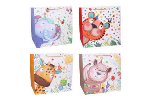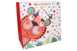Darčeková taška o veľkosti XL 36x54x30 cm Detská. 4 varianty zvieratiek: tiger, slon, ovečka a žirafa.