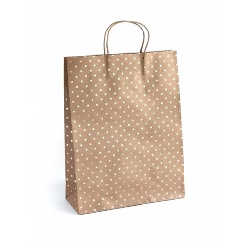 Darčeková taška - XL, 39 x 30 cm, kraft, zlatá bodka