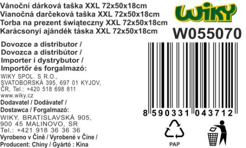 Darčeková taška o veľkosti XXL 72x50x18 cm VIANOCE. 2 farebné variaty.