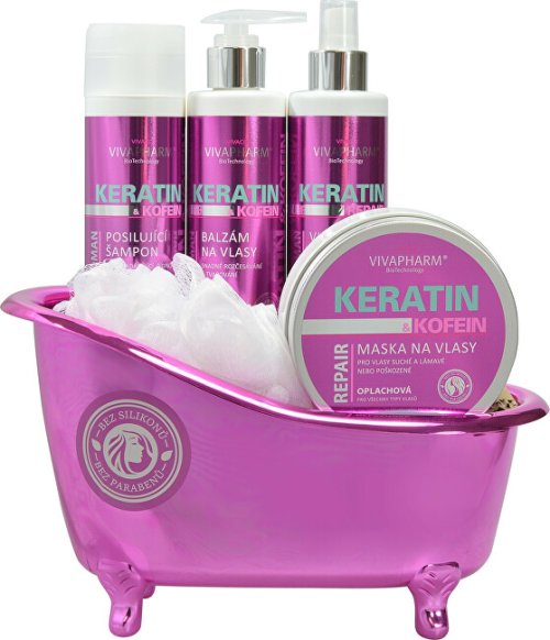 Krásne darčekové balenie vlasovej kozmetiky s keratínom a kofeínom na starostlivosť o všetky typy vlasov, predovšetkým poškodené, oslabené a vypadávajúce. Darčekové balenie obsahuje: