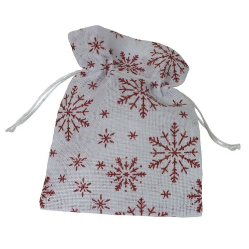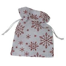 Darčekové látkové vrecko, biele s červenými vločkami,