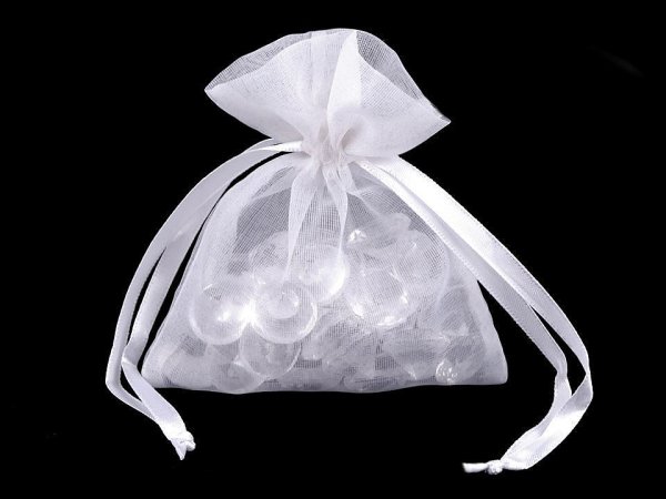 Darčekové vrecúško s kovovým leskom 8x10,5 cm organza shine - biela (10 ks)