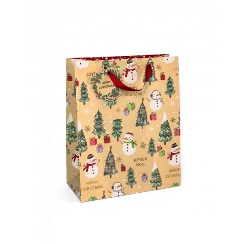 Papierová dekoratívna darčeková taška s vianočným motívom, rýchly pomocník pri balení vašich darčekov Uchá z krúteného papiera s kartičkou na odkaz Rozmery: veľkosť L - 32 x 12 x 26 cm Motív: Vianoce, snehuliak …