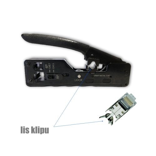 Konektorovacie kliešte vhodné na konektorovanie RJ45, RJ12, RJ11 konektora a následného zalisovania klipu konektora. Vhodné pre konektory s otvormi pre káble CAT6A a CAT7. /pri prenastavení pozície plechu je možné použiť aj pre cat.5e/