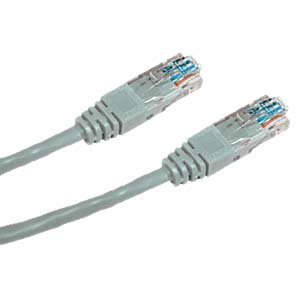 Kvalitný krížený patch kábel cat.5e UTP s dvoma konektormi RJ45 slúži na prepájanie počítačových sietí.
