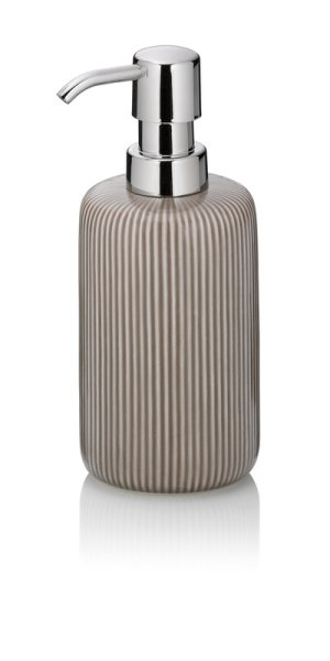 Farba pre vašu kúpeľňu: veľký, krásny keramický dávkovač mydla Ava s objemom 350 ml. Dávkovač mydla zaujme svojou kamennou šedou farbou. Výmenná hlava čerpadla je vyrobená z plastu, pochrómovaná. Výška: 17,5 cm Keramika 7,5 cm, v. 17,5 cm