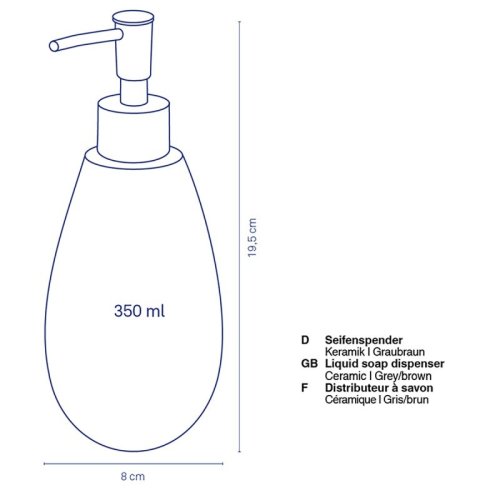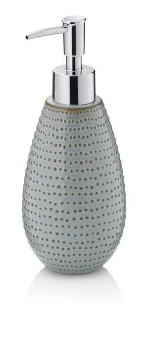Špeciálny dávkovač mydla zo série Dots. Vizuálne zachovaný v šedohnedej farbe je tento exemplár niečím výnimočný. Takzvané bodky sú vystúpené a sú teda cítiť, keď dávkovač mydla držíte v ruke. Rozmery: výška 19,5 cm, objem 350 ml. Keramická lesklá 8 cm, v. 19,5 cm