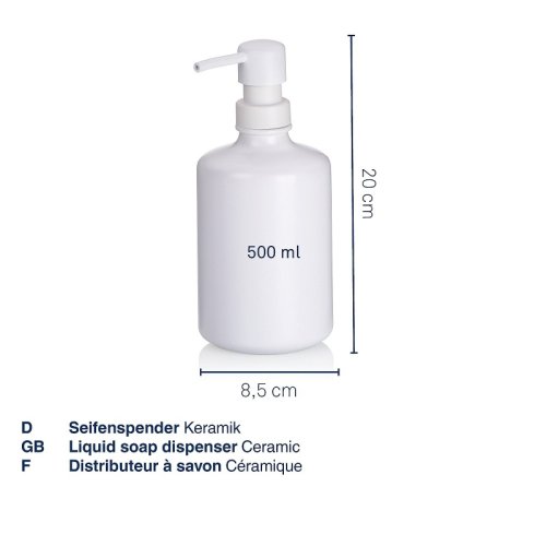 Dávkovač mydla Leonie keramický biely 20,0 cm 8,5 cm 500,0 ml KL-23697