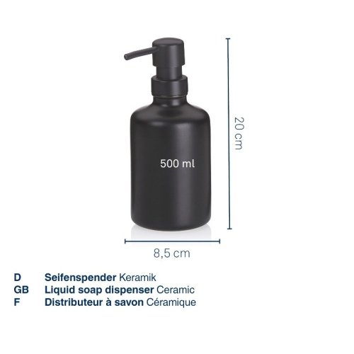 Dávkovač mydla Leonie keramický čierny 20,0 cm 8,5 cm 500,0 ml KL-23699
