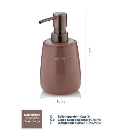 Dávkovač mydla Liana - tlmené, ponuré, jesenné farby do vašej kúpeľne. Tento dávkovač mydla s rozmermi 8,0 cm, výška 15,0 cm je vyrobený z keramiky a pojme 300 ml mydla Keramický lesklý.