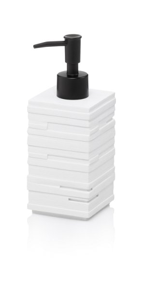Hľadáte špeciálne kúpeľňové doplnky? Vďaka špeciálnemu vrstvenému dizajnu v bielej farbe bude dávkovač mydla Posidon pútačom každej kúpeľne. S robustným plastovým dávkovačom mydla s lesklým povrchom. Dávkovač mydla pojme 350 ml. Zo série je tiež ladiaci toaletný set, hrnček a miska na mydlo Polyresin 7x7cm, 17,5cm