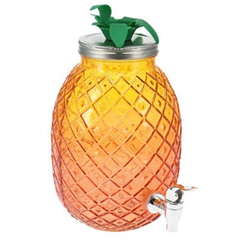Farebné prevedenie (žltá/oranžová) rozžiari každý interiér aj vonkajšie posedenie, zatiaľ čo strieborný kohút z PP plastu umožňuje pohodlné nalievanie bez rozliatia. Kovové viečko zaisťuje uzavretie a chráni obsah pred vonkajšími vplyvmi, zatiaľ čo zelený silikónový list alebo korunka na viečku pridáva dávkovaču hravý dotyk prírody.