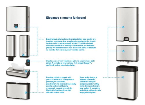 Vytvoriť sofistikovaný dojem na toaletách a umyvárňach je rovnako dôležité, ako je pre vaše podnikanie hlavný priestor recepcie či vaša ponuka a služby. Vytvorte skvelý dojem, ktorý podporí imidž vysokej kvality vášho podniku s dávkovačom Tork Image Line Sensor ! Ponúka skvelé ekonomické riešenie vďaka presnému dávkovaniu, ktoré zníži spotrebu až o niekoľko desiatok % . Svoje využitie nájde prevažne v pohostinstve, zdravotníctve, strojárstve, v odbore financií aj v ďalších oblastiach, kde sú kladené vysoké nároky na hygienu.