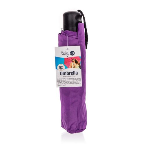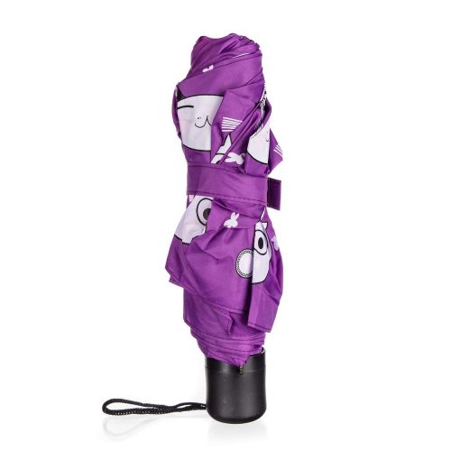 Skladací dáždnik vo fialovej farbe s mačičkami, slúži na ochranu proti dažďu a priamemu slnku. Je vyrobený z nepremokavého materiálu polyester. Pri namočení mení farbu obrázkov.