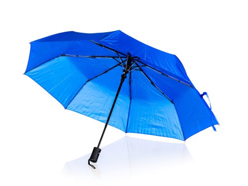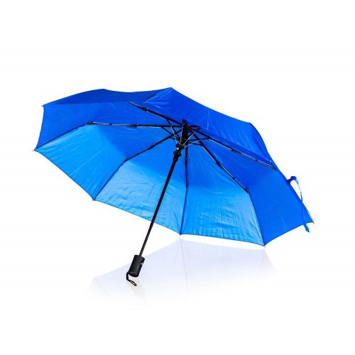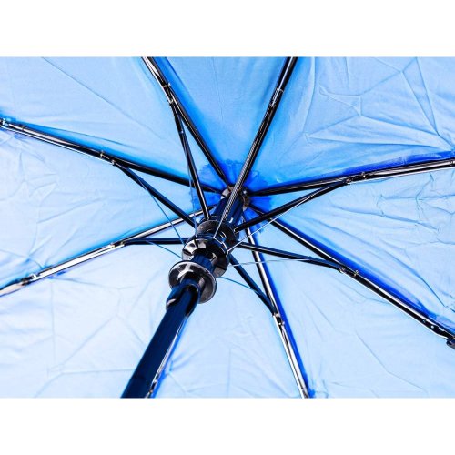 Skladací dáždnik 52 cm, v modrej farbe, slúži na ochranu proti dažďu a priamemu slnku. Je vyrobený z nepremokavého materiálu polyester. Má ochranu proti poškodeniu vetrom, automatické otváranie a je skladacia pre ľahké uskladnenie.
