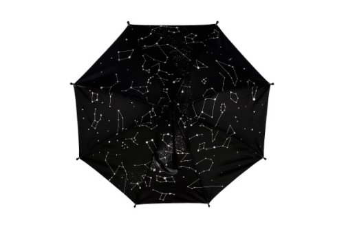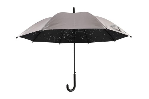 Keď do dažďa, tak s týmto štýlovým dáždnikom! Krásny vystreľovací dáždnik. Zaujme svojim dizajnom v kombinácii striebornej farby a vnútorným motívom súhvezdia. Dĺžka v zloženom stave: 70 cm Priemer rozležaného dáždnika: 90 cm Rozmery výrobku: 9 x 70 x 4 cm Vhodné od 14 rokov