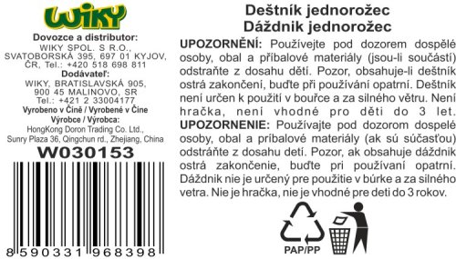 Dáždnik jednorožec. Dĺžka 50 cm. Viac variantov.