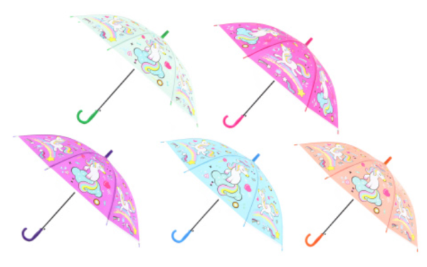 Vystreľovací dáždnik s motívom Jednorožcov. Má pevnú oceľovú konštrukciu a plastové držadlo. Detské paraple je možné zaistiť opaskom na plastový cvok. Rozmery: celková dĺžka dáždnika: 64 cm dĺžka plastovej rukoväte: 11 cm rozmer otvoreného dáždnika: 83 x 83 x 65 cm UPOZORNENIE: Balenie obsahuje 1ks dáždnika. Obrázok je iba ilustratívny. Farebné prevedenie dodávame podľa skladových zásob. Tento výrobok nie je hračka.