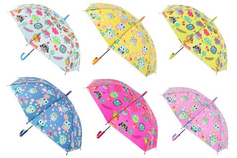 Vystreľovací dáždnik s motívmi sovičiek. Rozmery rozloženého dáždnika cca 84 x 84 x 65 cm. Rozmery balenia cca 66 x 9 x 4 cm. Balené v igelitovom sáčku.