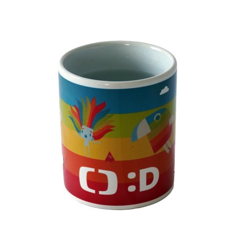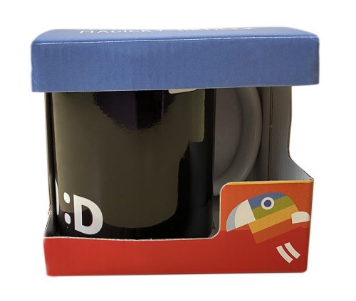 Magický hrnček s licenciou Déčko Českej televízie. Vlejte do hrnčeka teplú vodu a on odkryje farebné obrázky. Po vychladnutí hrnček opäť stmavne.