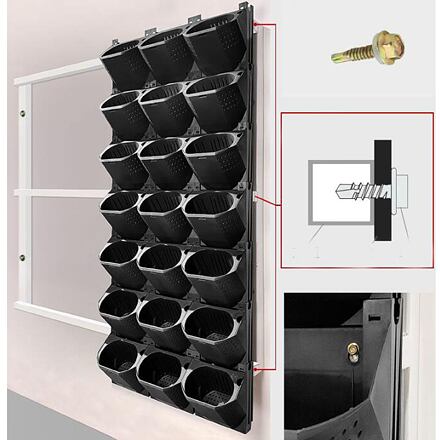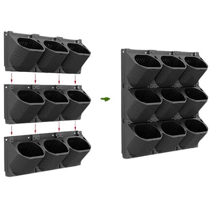Plastový kvetináč na stenu Merco Decor je ideálnym riešením pre milovníkov rastlín, ktorí chcú oživiť svoj domov alebo záhradu. Kvetináč je vyrobený z odolného a ľahkého plastu. Viac kusov môžete k sebe ľahko vertikálne „pricvaknúť“ a vytvoriť si tak väčší set. Kvetináč sa inštaluje priamo na stenu alebo sa môže zavesiť na konštrukciu (viď obrázky). Montážny materiál ani konštrukcia nie sú súčasťou balenia. Odporúčame skôr na vonkajšie použitie, na záhrade, balkóne alebo terase. Balenie obsahuje 1 kus. Vytvorte si jedinečnú zelenú stenu plnú vašich obľúbených rastlín – byliniek, kvetov či sukulentov. Perfektná voľba pre tých, ktorí chcú ušetriť miesto a zároveň si užiť krásu zelene po celý rok. - balenie: 1 ks - materiál: PP - celkové rozmery: 49 x 19 x 14,5 cm (šírka x výška x hĺbka) - vnútorné rozmery jedného dielu: 14 x 10,5 x 10 cm - hmotnosť: cca 720 g