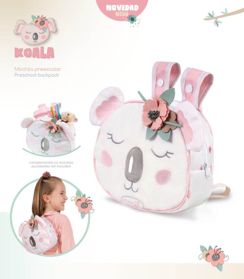 DeCuevas 10579 Detský batôžtek KOALA 2024 patrí do rovnomennej kolekcie, ktorá je novinkou roku 2024 a ponúka nielen kočíky, ale aj iné doplnky pre malé slečny a ich bábiky. Táto dievčenská kolekcia KOALA je doslova nežnosť sama. Batôžtek je v tvare spiaceho medvedíka s kvetinou za uškom. V prevedení sa strieda biela s drobnou kvetinovou potlačou s lososovo ružovým jednofarebným materiálom. Tento motív sprevádza každý výrobok z kolekcie.