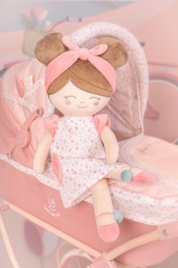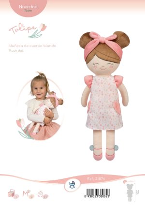 DeCuevas 21074 Plyšová bábika Tulipe 2025 - 36 cmPlyšová bábika Tulipe je malá slečna z rovnomennej kolekcie, ktorá je novinkou roku 2025. Tulipe je, ako už sám názov napovedá, kolekcia plná tulipánov v prekrásne zladených teplých pastelách. Svetlejšie a tmavšie odtiene farieb sú vkusne doplnené drobným kvetinovým vzorom v rovnakých tónoch na bielosmetanovom podklade. Tento motív ešte navyše u kočíkov umocňujú svojim tematickým tvarom aj prekrásne, ako tulipán vyzerajúce tašky. Kvet tulipánu zdobia aj drevené výrobky tejto kolekcie. Bábika je vyrobená z vysoko kvalitného hladkého lesklého plyšu a je prateľná (ručne na 30 ° C). Vďaka svojej veľkosti a nízkej váhe je ideálnou spoločníčkou každého malého dievčatka nielen na cestách, ale vďaka mäkkému materiálu je príjemná aj na maznanie do postieľky. Bábika je balená v igelitovom obale. Veľkosť 36 cm. Doporučený vek 12m+. xdxv)• Váha balenia: 0,12 kg• Odporúčaný vek od 12 mesiacov