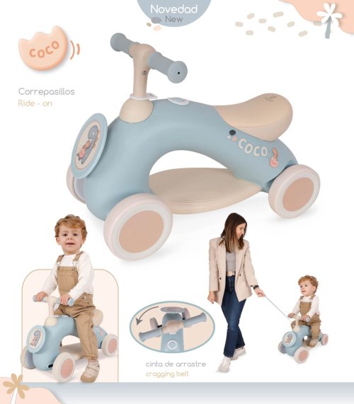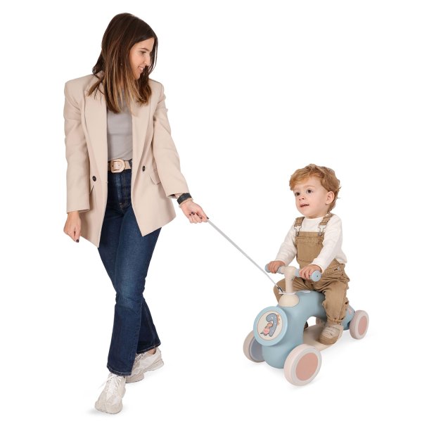 DeCuevas 30080 Moje prvé odrážadlo COCO 2024, z rovnomennej kolekcie, ktorá je novinkou roku 2024, je ideálnym dopravným prostriedkom pre najmenšie deti. Pokiaľ už vaše dieťa zvláda prvé kroky a je pripravené začať sa učiť jazdiť, bude toto odrážadlo pre neho perfektnou hračkou a pomocníkom. Deti si počas hry môžu vyskúšať nasadanie, zosadnutie, odrážanie a riadenie a budú tak môcť rozvíjať svoje ďalšie schopnosti. Veľkou výhodou tohto odrážadla je podnožka a ťažný popruh, ktorý umožní jazdu aj tým najmenším, alebo uľaví boľavým malým nôžkam. V hravej kolekcii COCO je dominantný obrázok dinosaurie mamičky so svojim roztomilým mláďatkom, ktoré nesie na zadočku ešte vaječnú škrupinu. Potlač malého dinosauríka na jemne holubičej šedomodrej látke je základom celej kolekcie, ktorú zdobia prvky v pieskovej alebo ružovkastej farbe, ktorá sa premieta aj do väčšiny nosných konštrukcií. Nádherný španielsky dizajn, precízne spracovanie. Veľmi jednoduchá manipulácia počas samotnej hry. Materiál: plast, guma. Balené v krabici vo farbách kolekcie. Odporúčaný vek od 3 rokov.